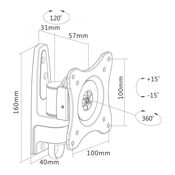 60° re. u. li. schwenkbar, 360° drehbar